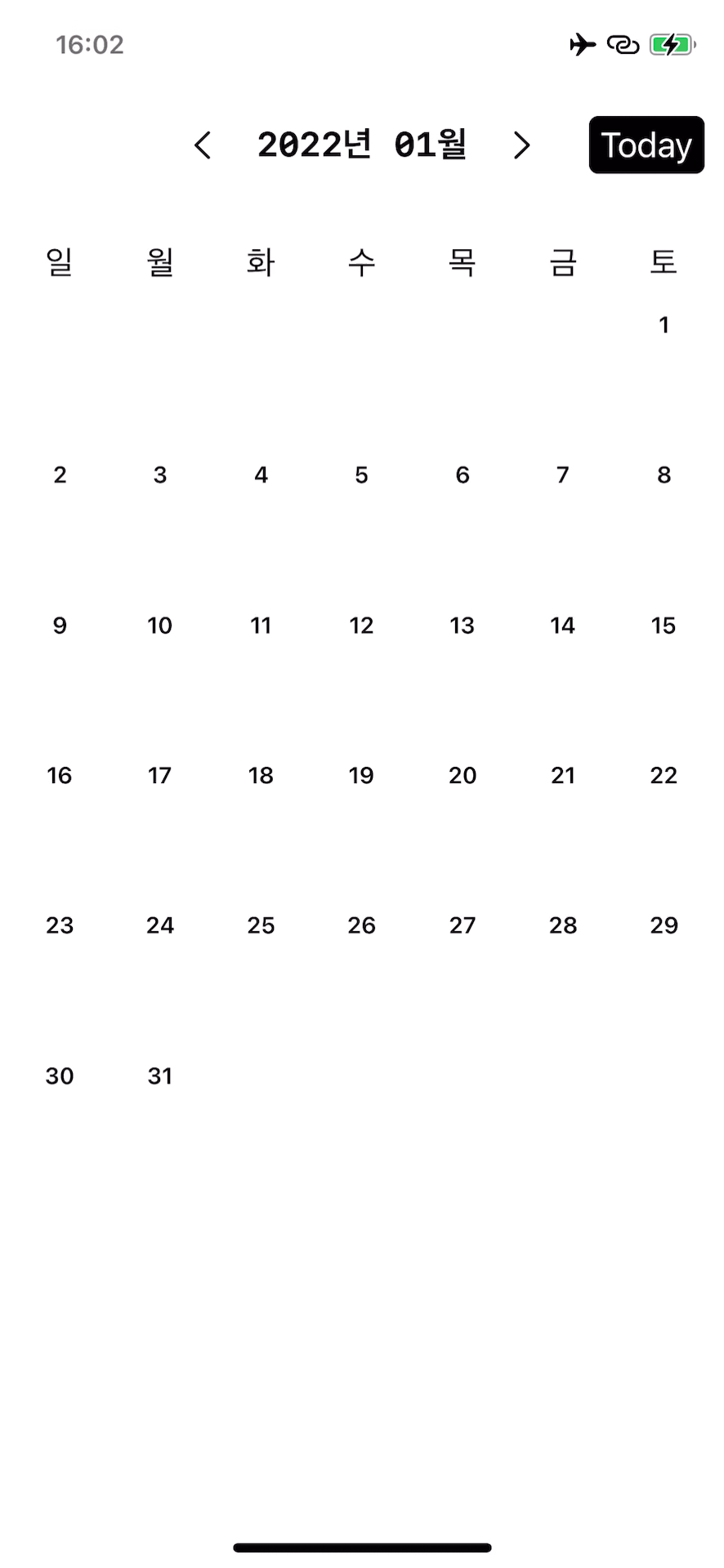 여기까지 하고 실행해보니 이번 달 달력이 화면에 잘 표시되네요!